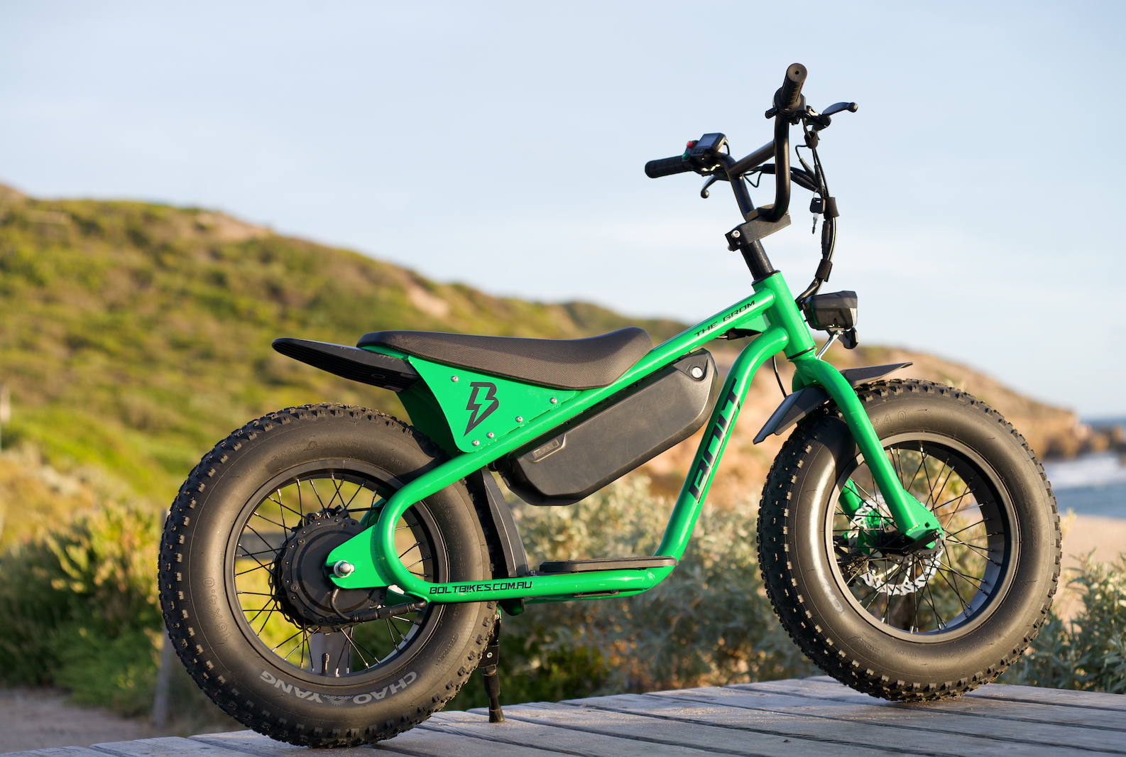 The Grom combines functionality and flair with its off-road knobby tires, sleek wide feet platform, and bold, striking colours. Inspired by adventurers of all sizes, this bike ensures every ride is as stylish as it is comfortable, delivering the ultimate experience in design and performance.